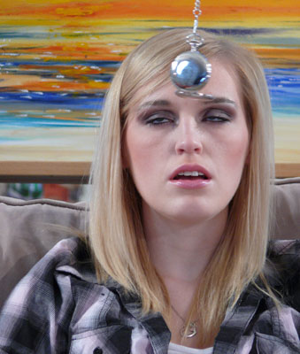 I really want to make a good impression Amanda, ready and eager to finally start the session, seems to really want to make a good impression on me. Of course our girl thinks that she is fully dressed for the occasion and ready to go under. Slowly but surely though she seems to get tiered and sleepy. I wonder why. Anyway, it seems like she is getting sleepier with every word she hears or says and no matter how hard she tries to stay awake, she just can not seem to stay up. Of course she tries to justify her strange behavior up until the last minute. Amanda, after lots of yawning, excuses and futile attempts to stay up, finally goes out. Naturally, I have to pull her up a few times, as I am trying to wake her up but she keeps plopping back into the couch. Looks like she is done and the only thing that's left to do, is to perform some eye checks. |