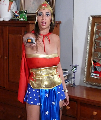 Wonder-bimbo I am wonder woman, I fuck the universe I can slap you with those This next one is a bit different as it shows Jen, our sexy Wonder-woman, go from being a righteous crime fighter who tries to arrest me, to being a completely oversexed and somewhat stupid little bimbo who wants nothing more than to get fucked by me and everybody else in the universe. Really amazing segment. Needless to say that I warned her about using the "stun- " on me due to the fact that I had previously tinkered with it but of course she does not believe me. After a couple of "mindlessly dim moments" Jen has no other intentions than to slap me with her tits, get fucked by me, masturbate and what have you. Te second part of this segment shows her waking up after a brief deepening and now she seems to have completely forgotten what wonder-women do. Am I glad I have a manual that explains all the things wonder-women do, like squeeze their breasts, masturbate while spreading their legs wide and drop into mindless bliss (with rolling eyes of course). What makes this even funnier is the fact that she believes to be very intimidating yet grateful for my help. |