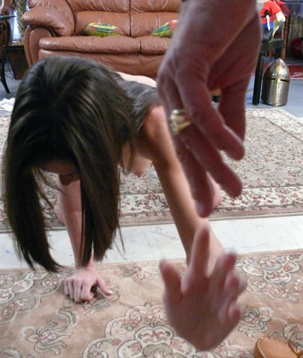 I am too firm minded Monica believes to be a reporter with the local newspaper who is interviewing me about my work. I can not help but notice that she does not really seem to believe hypnosis might actually work and that she is definitely not a good candidate, being firm minded and all. So, if I clap my hands and say sleep, for example, that would not do anything, right? Of course no....Oops. Up and awake again, Monica seems a bit confused but other than that, she seems ok. Next, I explain to her how to program people while they are staring right at you. Now that is definitely not going to... Oops. Let’s try something else; as we all know, the written word is very powerful and a great way to program your subject. The first word I spell out for her is F R E E Z E. Mindlessly frozen, Monica has no clue that I am messing with her clothes and that I am moving her stiff little body around. Needless to say she is very confused and a bit embarrassed when she wakes up. OK, back to the written word. Let's try another one, O R G A S M. Not gonna w.....oh. |