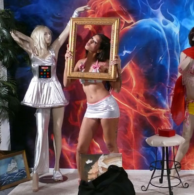 Museum is now closed The reluctant mannequin Well, well, well what have we here? A sexy little girl who fails to the local museum at closing time! Thinking that she is all alone, our "afterhours thief" decides to pose as one of the antique mannequins which are displayed in the museums west wing. Seemingly triumphant about "out smarting" the security system and the stupid guard, she starts to steal some of the valuable paintings when she suddenly hears the night guard approaching. Thinking that she is smart, our little thief, pretends to be one of the mannequins. Hoping to stay undetected, she has no choice as to let the curious night guard expose her breasts. I think you guessed by now who the night guard might be. I really had a lot of fun with this one. Stefania tries so hard to stay still and frozen in order to make me believe that she in fact is a mannequin. Anyway, the guard finally leaves and she can continue to fill her bags. All of a sudden she discovers a small red box with an interesting looking ring in it. Well, trying on the flashing ring turns out to be a big mistake. Her body freezes up, her eyes turn dim as she gazes into nothingness. Looks like our security guard is going to have some fun when he comes back. Go find out what happens. |